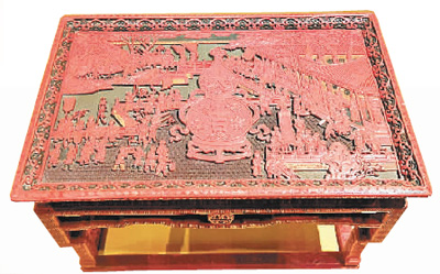 剔彩漆大吉寶案 光明日報記者 李韻攝/光明圖片