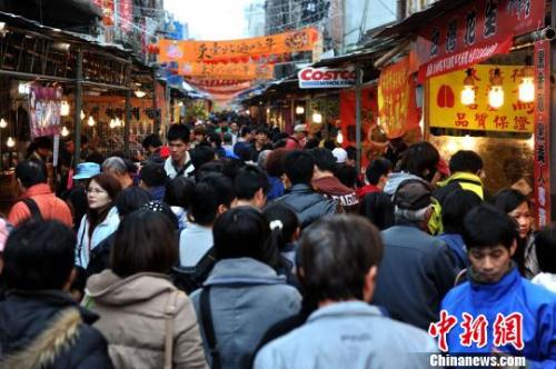 資料圖片:臺北著名年貨大街——迪化街人山人海。