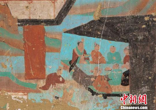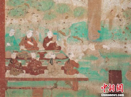 1月20日,敦煌研究院從石窟壁畫、敦煌文獻、館藏文物中梳理歸納出歲時節令大寒時,古人為辭別舊歲、迎接新年而祈福、聚飲等生活習俗。圖為莫高窟第360窟《露天酒肆》(中唐)。敦煌研究院供圖