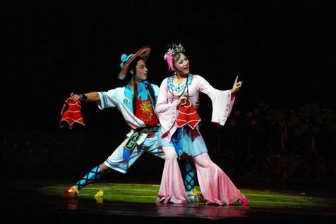 遠安花鼓的劇目與湖北省各路花鼓基本一致,尤其是與襄陽花鼓相似,其唱腔與襄陽花鼓幾乎是同樣風格。這是因為遠安花鼓的發祥地茍家埡與襄陽臨界,相互交流頻繁的緣故。遠安花鼓的唱腔可謂豐富多彩,優美動人。它分為主腔和彩腔兩類。主腔又分為陶腔,漢腔、南腔、四平四種,四平又分為上四平和中四平。主腔中,陶腔為當家腔。主腔屬板腔體,一般有起、正、腰、落四個板式,便于敘事敘情。彩腔是曲牌體,一般一戲一個曲牌,曲牌名就是戲名。《賣線子》、《繡荷包》、《瓜園會》就屬此類。遠安花鼓屬打鑼腔,無絲弦伴奏,演唱時,前臺唱,后臺合(幫腔),鑼鼓腰板。藝人唱戲注重報字,行腔帶襯詞,做到字正腔圓,聲情并茂,頗受農民喜愛。
