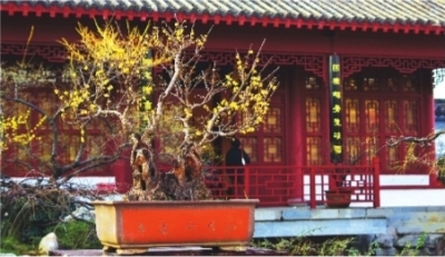 東湖梅園內的古蠟梅漢派寫意樁景 長江日報記者劉帥 攝