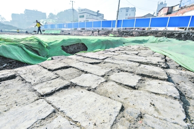 近日,位于武昌區(qū)的中山路與得勝橋交會(huì)處,一處施工工地發(fā)現(xiàn)了武昌的老城墻根兒。這是武昌城的武勝門遺址。22日,長(zhǎng)江日?qǐng)?bào)報(bào)道組現(xiàn)場(chǎng)探訪,考古人員正在挖掘老城根遺址 長(zhǎng)江日?qǐng)?bào)記者胡冬冬 攝