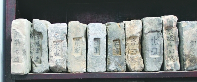 武昌城宋磚,依次為:漢陽軍造、水軍、前軍、中軍、右軍、踏白軍