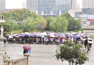 去年11月,奶茶界的“明星”喜茶LAB店首進武漢,入駐漢街。開業當天,下著雨,門口買奶茶的市民排隊過長,店方不得不單獨開辟一塊地方,將人引至一旁的昭君廣場。長江日報記者見證,排隊最長的超過5小時。排隊的人群中,還有人實時直播排隊還有多長,為朋友們“踩點”。