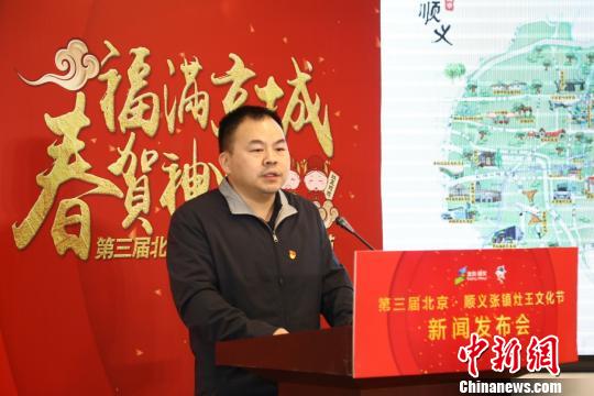 中新網北京1月24日電 (韓成功)第三屆北京·順義張鎮灶王文化節新聞發布會23日于順義區奧林匹克水上公園舉行。發布會上,張鎮黨委副書記、總工會主席董昌國表示,第三屆北京·順義張鎮灶王文化節將于2019年1月28日至1月31日在順義張鎮蓮花山滑雪場舉辦。