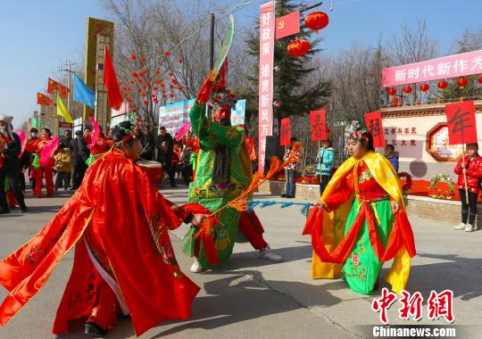 中新網(wǎng)蘭州1月28日電 (侯志雄 高展)“小時(shí)候過(guò)年耍社火,全村人都參與。我第一次‘跑社火’才十幾歲,什么也不懂,就舉著燈籠跟著社火隊(duì)跑了一天,結(jié)束后換了根麻花拿回家,心里美滋滋的。”甘肅省慶陽(yáng)市西峰區(qū)肖金鎮(zhèn)肖金村七旬老人晉德龍如今繼續(xù)活躍在當(dāng)?shù)厣缁鹞枧_(tái)上,兒時(shí)的表演記憶伴隨著“很濃的年味兒”。