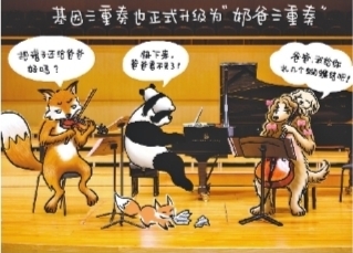 劉淑娟自幼愛好繪畫,曾為自己設計了一個奶牛的卡通形象。愛上“基因三重奏”之后,劉淑娟決定用自己擅長的漫畫為音樂家們繪畫。“我花了大量的時間找資料,翻完了三位老師的微博,還找了很多關于他們的樂評。”翻微博的過程中,她發現三位音樂家曾設計過卡通形象,把鋼琴家張佳林和小提琴家張精治畫成了貓和猴子,但劉淑娟總覺得還不夠契合。經過多番考慮,她把鋼琴家張佳林畫成了“白白胖胖的大熊貓”,小提琴家張精治是“好玩的狐貍”。至于大提琴家宋昭,她原本畫的是一頭熊,但怎么看都覺得和宋昭一頭飄逸的長發不相符,于是改成了秀發更加飄逸的阿富汗獵犬。
