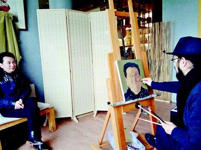 當天上午,童雁汝南一邊畫田克兢,一邊請田克兢講述自己的故事,田克兢很快進入角色,把畫室變成了他的主場。“我是個滴酒不沾的人,但有一次為了演醉打電話這樣的情節,真的就喝酒上場,寧愿把自己的身體損個一兩次,也要把戲演好。我只記住一條,真誠對待觀眾。”作為模特的田克兢也很敬業,提前修理了發型,“我幾十年都是這一個發型,我的觀眾們說,如果換了個樣子就不是田克兢了。”