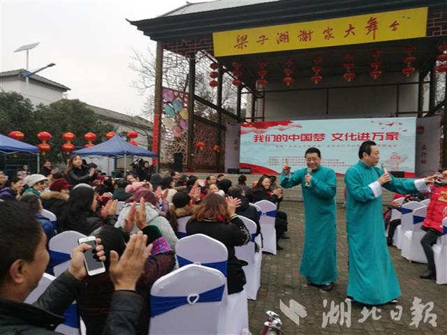 中國相聲金玫瑰獎得主、中國戲劇梅花獎得主、中國曲藝牡丹獎得主、中國話劇金獅獎得主……1月31日,“我們的中國夢”文化進萬家——荊楚“紅色文藝輕騎兵”走進江夏區五里界街群益村,省文聯組織一眾文藝名家來到群益村,將優質文藝送到群眾身邊,現場成歡樂海洋。