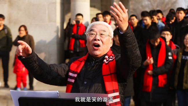 老教授的風(fēng)采,在高校版《我和我的祖國》均有展示。他們置身莘莘學(xué)子中,彈奏小提琴,揮動(dòng)小國旗,跳著歡快舞,或組織指揮音樂,激情滿懷,仿佛回到燃情歲月。