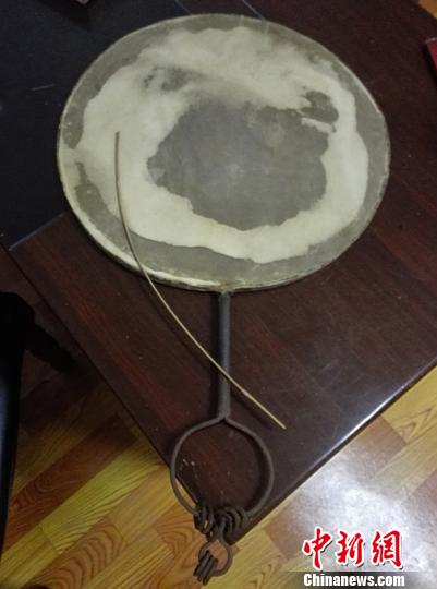 圖為端鼓腔表演伴奏樂器羊皮鼓?!√K本善 攝