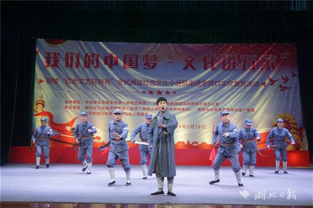 “人之初,性本善。性相近,習相遠……”朗朗書聲在老河口市藝術劇院響起,幾十名小朋友帶來歌舞《城北一片讀書聲》。文藝演出還有戲曲聯唱、歌舞、戲歌、快板舞、詩朗誦等節目,既富有地方特色,也洋溢著新春的喜慶氣氛。