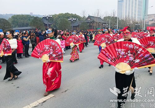 29支民間藝術表演隊分別在城區、掇刀區主干道為市民帶來精彩表演。本次演出內容包括秧歌、腰鼓、采蓮船、龍燈、舞獅、蚌殼精、蓮湘、大頭娃娃、花棍、筷子舞、碟子舞、女子軍鼓、威風鑼鼓等等,同時融入快閃、街舞、旗袍秀等元素。