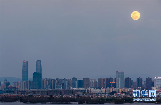 這是2月19日在昆明拍攝的月亮和城市風景。 新華社記者 胡超 攝