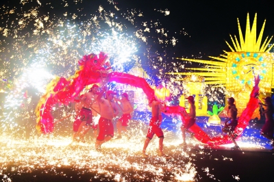 東湖燈會上演非遺民俗表演“火龍鋼花”