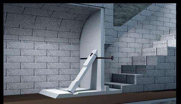 有人走向前輕輕推了下石門,不見任何響動。將手電光沿兩厘米寬的門縫照過去,只見有一塊石條把大門死死頂住,無論使出多大力氣,都無法將門推開。古代皇帝為了防止皇陵被盜,都設有反盜竊工具——頂門石!那么才能順利挪走頂門石,打開地宮大門呢?