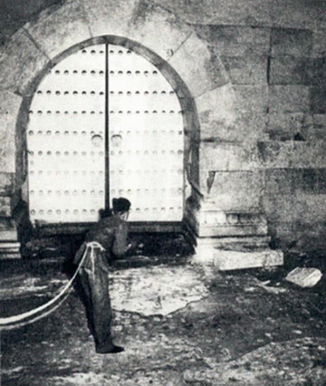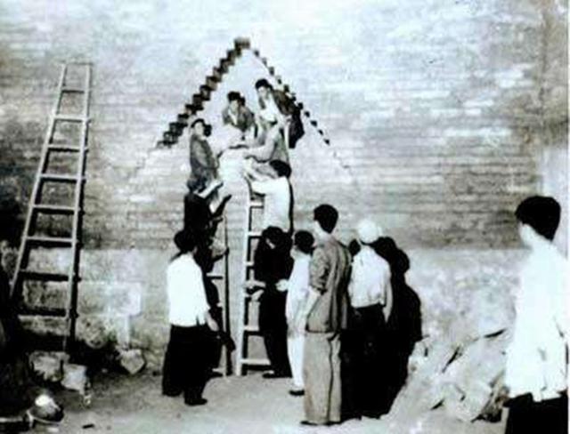 緊接著,幾名考古隊員跳了進去,借助手電筒和馬燈,他們在黑暗中找到了地宮的大門。因為并沒有發現傳說中的暗器機關,第二天,考古隊決定徹底打開金剛墻。很快,一塊塊的墻磚就被拆了下來,用整塊的漢白玉石雕鑿而成的地宮大門完全暴露在考古隊面前。此時,現場的考古隊員們都很想知道,緊緊閉的大門背后。究竟是怎樣的景象?