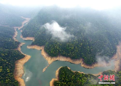 資料圖:俯瞰江西井岡山五指峰山腳下的井岡湖。劉占昆 攝