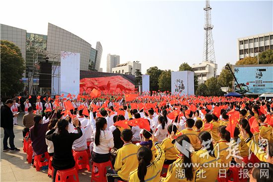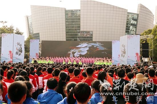 荊楚網客戶端—荊楚網消息(記者章巧慧 實習生徐麗花 通訊員楊杰 王海霞)3月26日,“同聲誦經典·枝江我的家”——2019湖北省“起點閱讀·朝讀經典”巡回展演活動在枝江市舉行,來自枝江市中小學校的兩千余名學生齊聚七星廣場,誦讀經典名篇,傳承傳統文化。