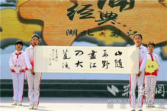詩詞書法開啟“同聲誦經典,枝江我的家”點亮儀式。(實習生 徐麗花 攝)
