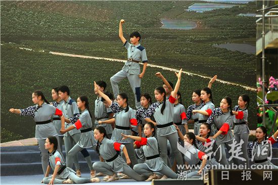 《我和我的祖國》以快閃形式融入節目。(枝江市新聞中心 供圖)
