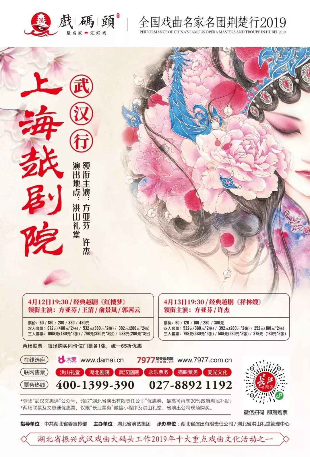 2019年“戲碼頭——全國戲曲名家名團荊楚行”活動的另一臺重頭戲,上海越劇院也應邀來鄂,由方亞芬、許杰領銜,率先于4月12日至13日在洪山禮堂獻演尹袁版《紅樓夢》和《祥林嫂》,4月16日在宜昌獻演《紅樓夢》,目前門票正在熱銷。