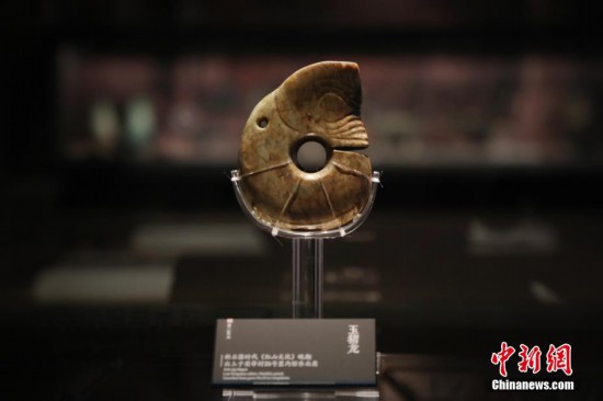 4月3日,“清明祭初祖 文脈傳華夏”網絡主題采訪團走進陜西梁帶村芮國遺址博物館。梁帶村芮國遺址博物館于2018年2月14日正式對外開放。梁帶村芮國遺址位于陜西省韓城市西莊鎮,為西周、東周時期古芮國遺址,發現于2004年10月。圖為芮國遺址博物館展出文物、5000年前紅山文化代表——玉豬龍,系改寫中國歷史記載的“國家寶藏”。趙昊 攝