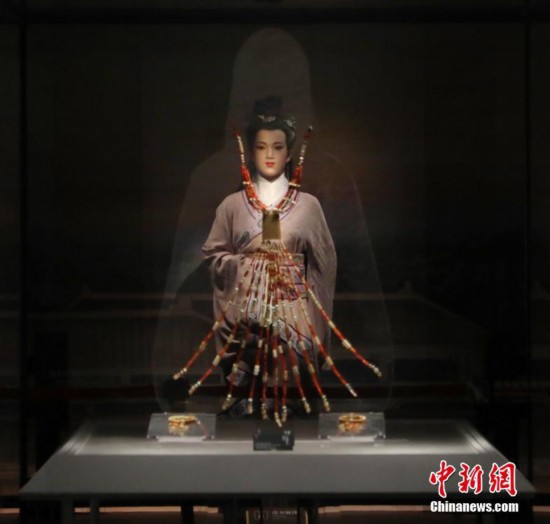 4月3日,“清明祭初祖 文脈傳華夏”網絡主題采訪團走進陜西梁帶村芮國遺址博物館。該遺址共出土金器、玉器、青銅器、象牙器等各類文物2萬余件(組),僅珍貴文物就有3千余件(組),其中國內首次重大發現的文物70多件。圖為梁帶村芮國遺址博物館展出文物。趙昊 攝