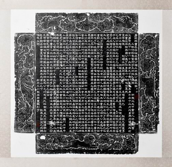 盧僎撰,湛然書,隸書。開元二十八年(740)十一月葬于伊川鄉龍門山。1988年洛陽市龍門鎮魏灣村出土。四側刻纏枝花草紋、瑞獸、牡丹紋。