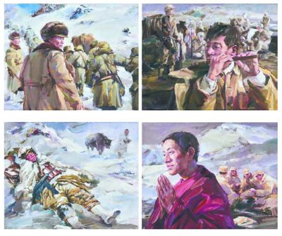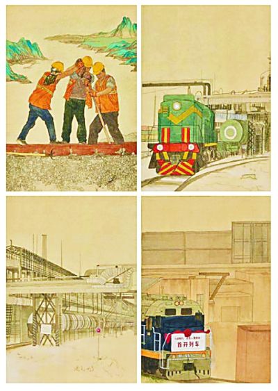 反映建設成就的作品有鄧林的《進藏先遣連》、狄傲然的《輝煌鞍鋼》、賀志強的《海軍航母插上翅膀》、李克難的《西部大動脈——成渝鐵路》、任志鵬的《中國速度》等;繪寫英雄人物的作品有陳運星的《中國第一位女司法部長——史良》、孫桂琪的《天文學家南仁東》、索嘉銘的《雷鋒的故事》、徐英德和徐源生的《兩彈元勛——鄧稼先》、王娓的《戰斗英雄高翔》等;陳濱和滕春曉的《紅旗渠》、陳增的《右玉精神》、李詩鵬的《致富路上》、孫妍的《致敬為幸福奮斗的平凡人——養蜂人》、吳珂的《苗寨扶貧記》則講述了普通人的奮斗故事。畫家們深入生活,大量寫生積累素材,最終呈現的作品不是平面化、圖解化,而是體現了藝術家對生活的思考和轉換。