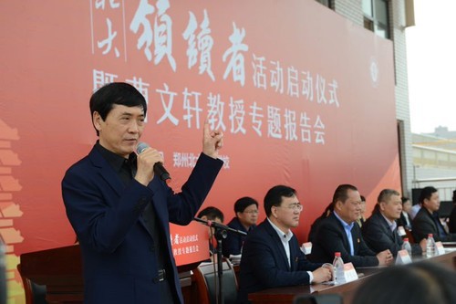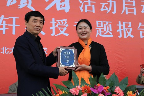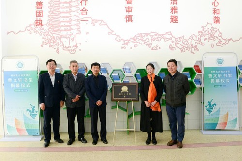 4月20日,締造書香校園“北大領讀者”項目在鄭州北大培文學校啟動。高秀芹博士向曹文軒教授頒發“北大領讀者”聘書,同時為全國20多所培文學校授牌,這些學校將作為示范學校在當地參與推廣“北大領讀者”活動。此外,作為“北大領讀者”項目的重要組成部分,“曹文軒書架”在鄭州北大培文學校揭牌。