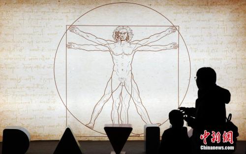 資料圖:《致敬達芬奇》全球光影藝術體驗大展中的《維特魯威人》。湯彥俊 攝