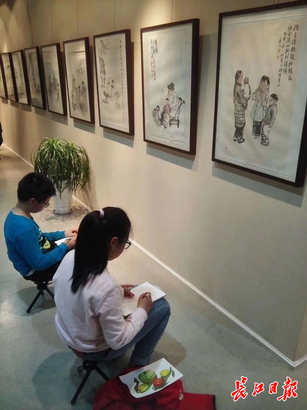 “點點窩窩,油炸面窩……”“把點姜把點蔥把點醬油把點醋……”“大頭大頭,下雨不愁,人家有雨傘,我有大頭”“糯米飴糖,越扯越長,扯到漢口,扯到漢陽”,這些兒時的順口溜和生活場景一點一滴被蕭繼石先生用畫面記載下來。在他的畫展上,不少小朋友和老人坐在畫前臨摹。
