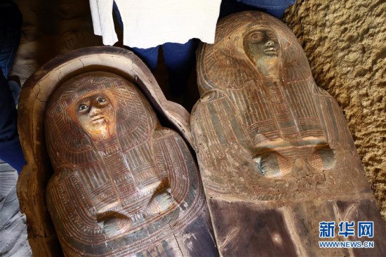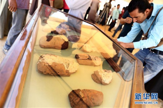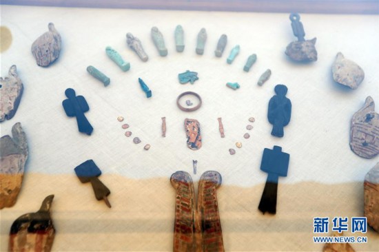 這是5月4日在埃及吉薩拍攝的出土文物。 新華社發(艾哈邁德·戈馬攝)
