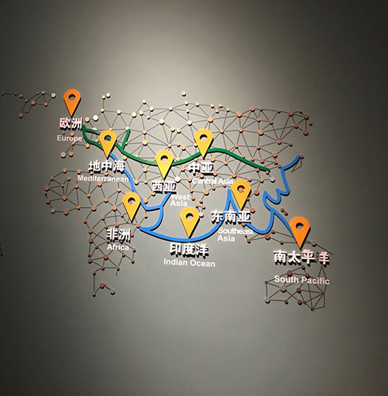 展覽按照地理方位將絲綢之路沿線國家納入人類文明交流互鑒的宏觀視野之中來觀察和思考,通過橫跨歐亞的陸上絲綢之路和連接亞非的海上絲綢之路兩個板塊,講述萬里絲路上的千年往事。