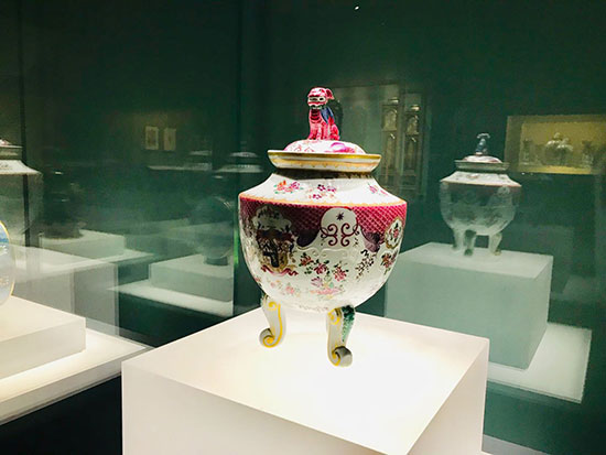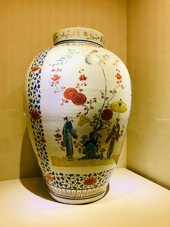 在歷史上,日本文化深受中國文化的影響。日本展區中的佛造像很多都是以中國同類造像為母本制造的。此外,日本在明末受到中國制瓷的影響,有些瓷器與中國瓷器相近,但又帶有明顯的日本民族風格,比如展區中的柿右門彩繪瓷瓶就是日本有名的“伊萬里瓷器”作品。日本產的瓷器在17世紀后半葉逐漸銷售至歐洲,將東方藝術審美帶到世界體系中。