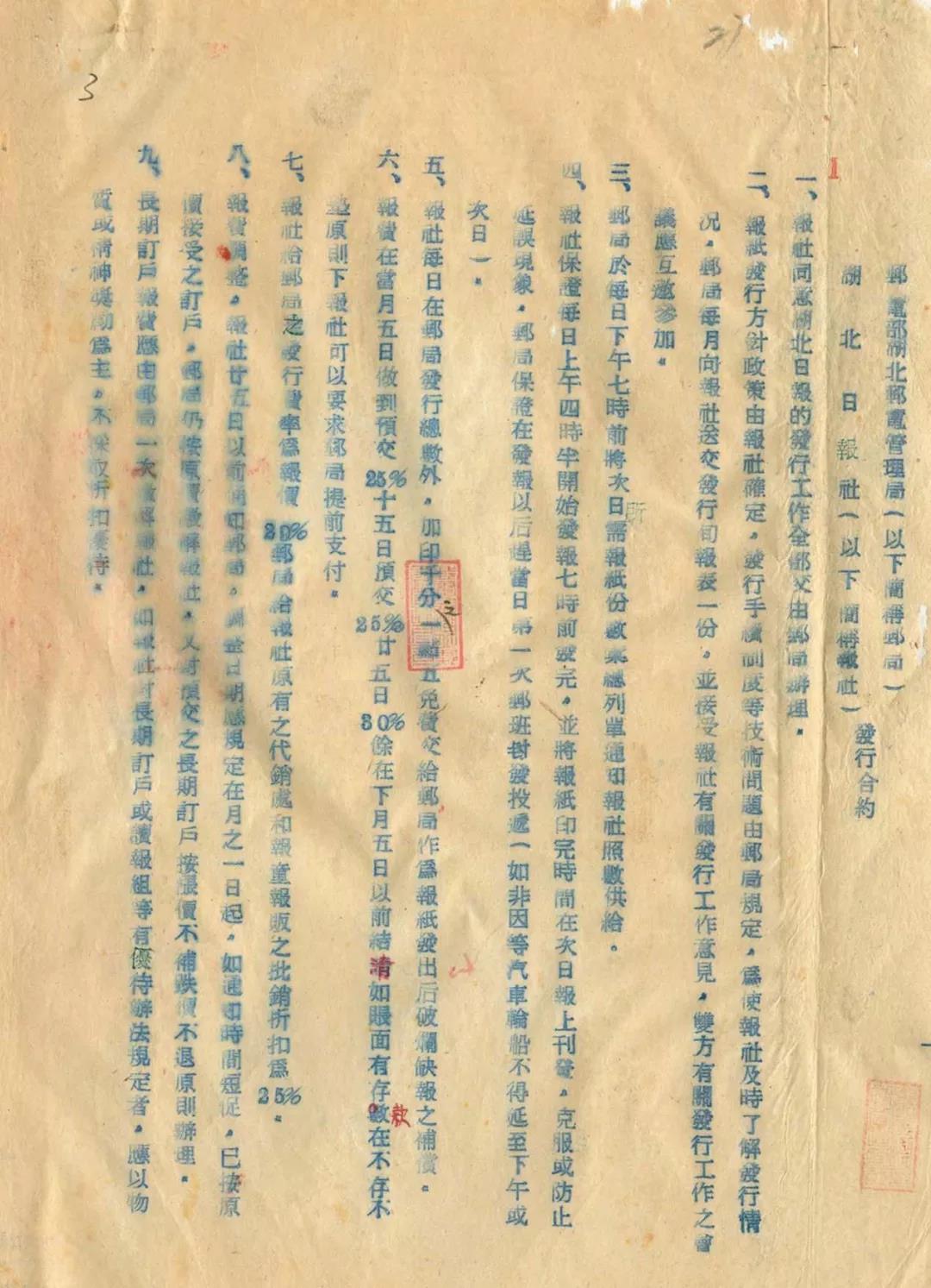 郵電部湖北郵電管理局、湖北日報社郵發(fā)合同。