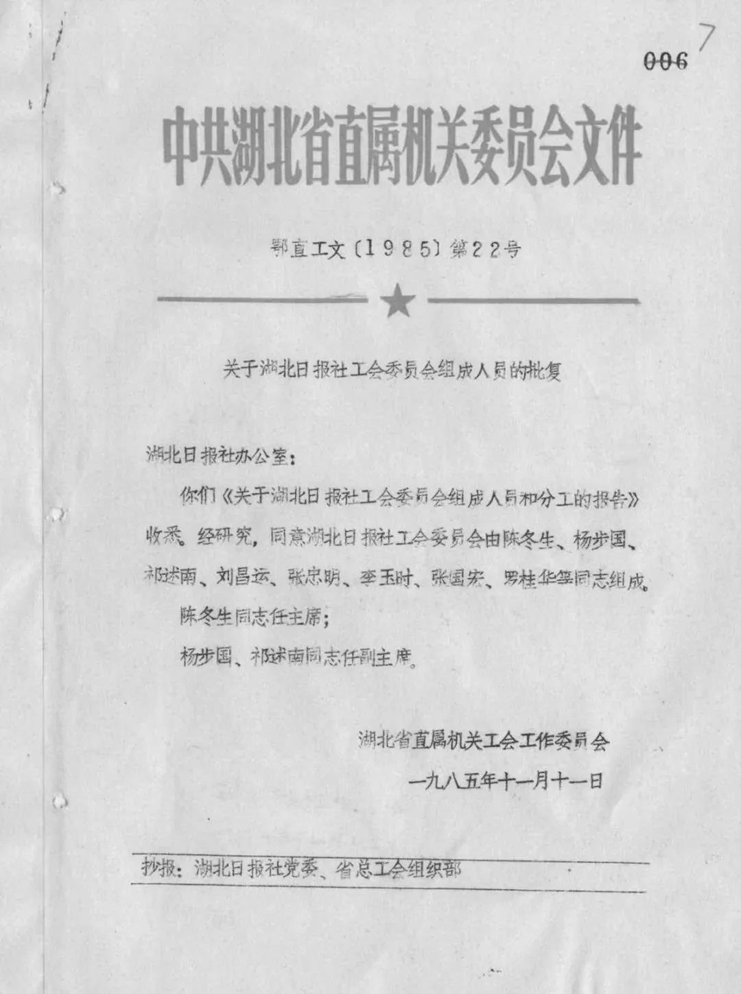 關(guān)于湖北日報社工會委員會組成人員的批復(fù)。