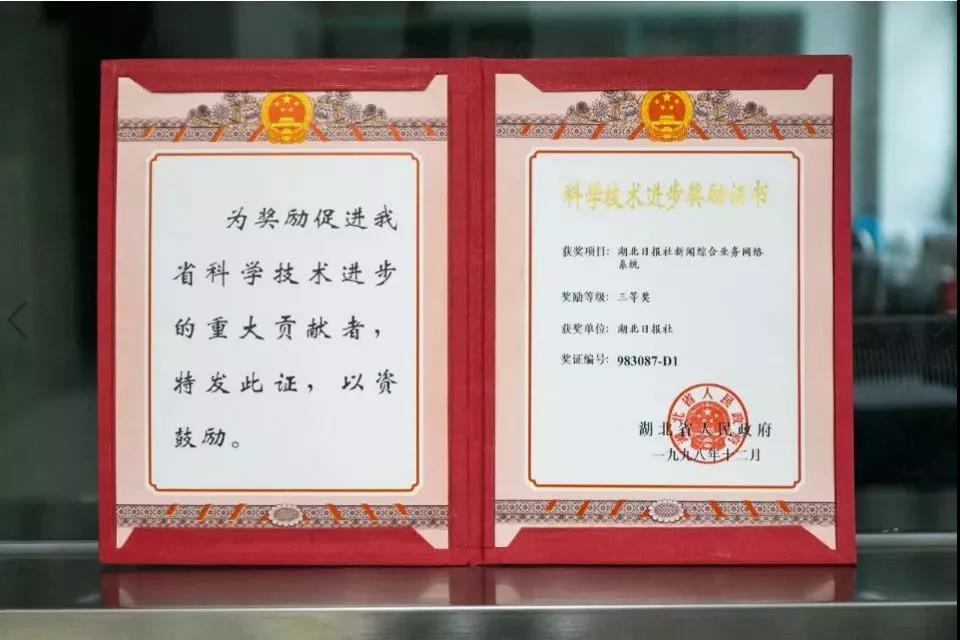 1997年12月23日,由報社與北大方正集團公司合作、共同開發(fā)的“湖北日報社新聞綜合業(yè)務(wù)網(wǎng)絡(luò)系統(tǒng)”通過專家鑒定。該系統(tǒng)采用集群技術(shù)、網(wǎng)絡(luò)數(shù)據(jù)庫技術(shù),集采編、組版、照排和管理等為一體,在全國報紙行業(yè)中處于領(lǐng)先水平。該成果獲“湖北省科技進步”三等獎。