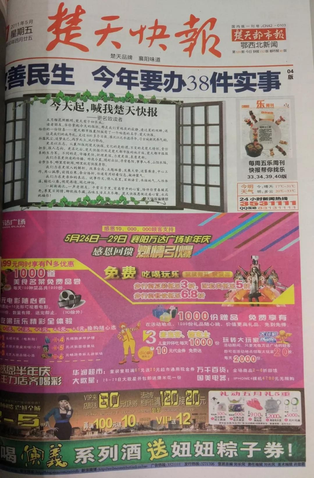 2009年1月4日,國家新聞出版總署批準(zhǔn)楚天都市報創(chuàng)辦《楚天都市報·襄樊版》。后更名為《楚天快報》。