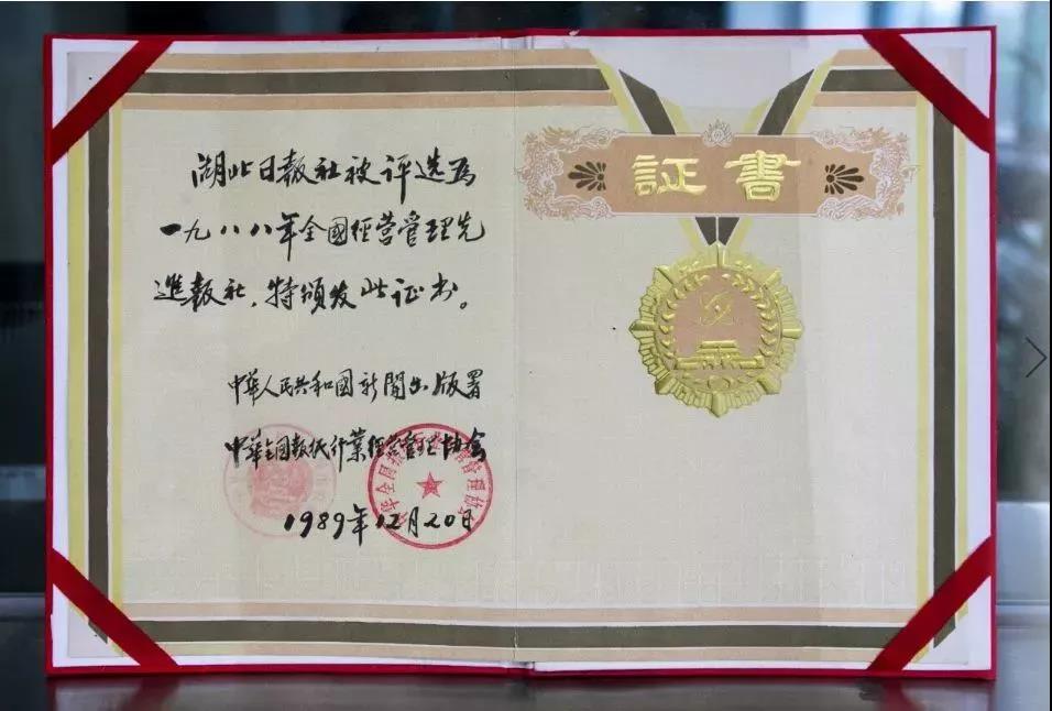 1989年12月,全國經(jīng)營管理先進報社表彰大會在北京召開,《湖北日報》等4家省、市委機關(guān)報榮獲“全國經(jīng)營管理先進單位”稱號。這是新中國成立以來第一次舉辦的經(jīng)營管理先進報社評選活動。