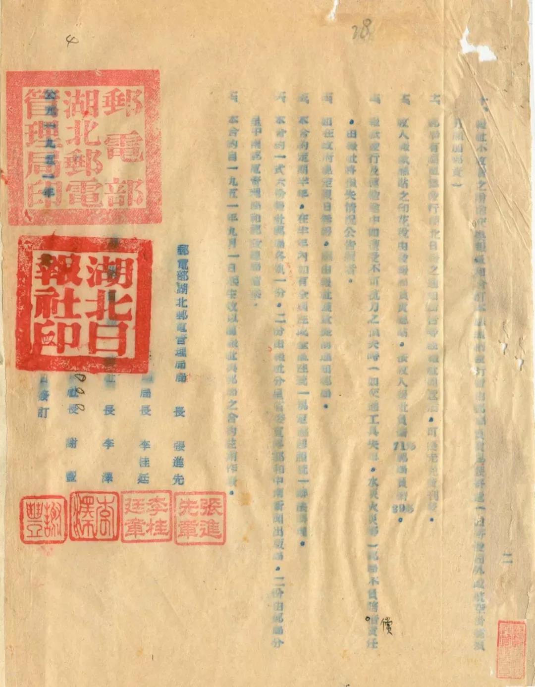 1953年7月1日,湖北省郵電管理局局長張進先與湖北日報社社長余英簽訂《湖北日報》發(fā)行合同。