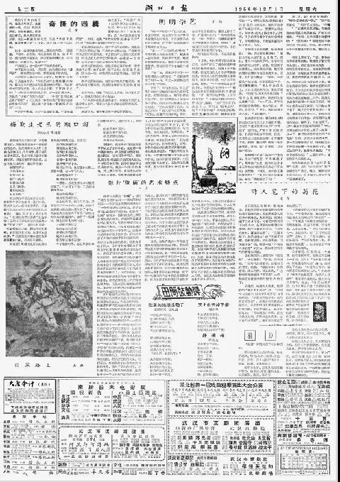 1956年12月,《湖北日報》文藝副刊“東湖”創(chuàng)刊。