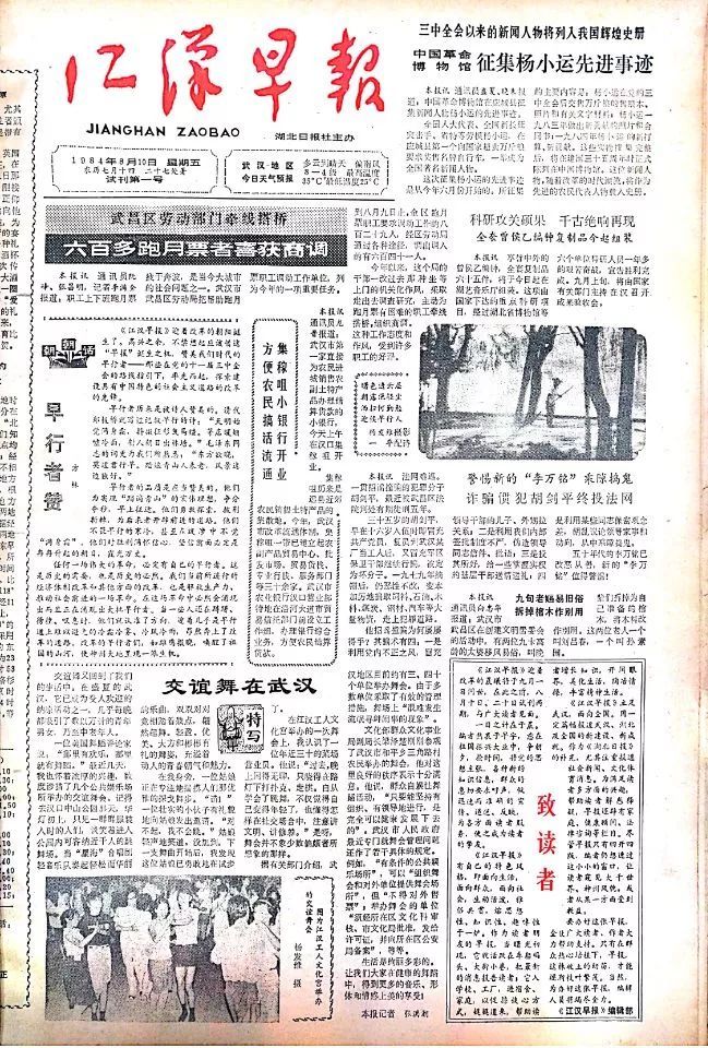 1984年9月1日,晚報類型的《江漢早報》創(chuàng)刊,四開四版,自辦發(fā)行。1988年3月31日停刊。