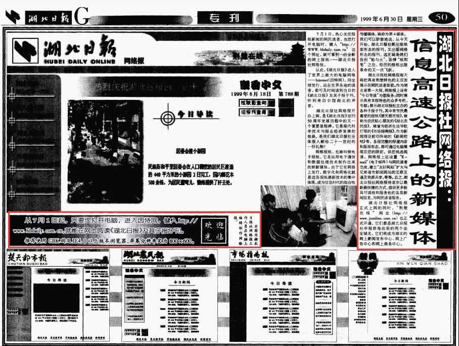 1999年7月1日,湖北日報社網(wǎng)絡(luò)報(即電子版)面世。
