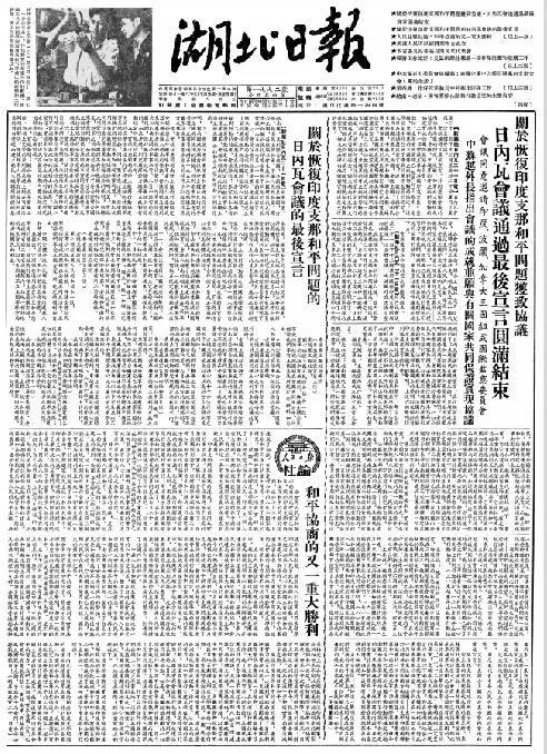 1954年7月22日,湖北日報、長江日報聯(lián)合首出號外,報道內(nèi)容為經(jīng)過75天的討論后,世人矚目的日內(nèi)瓦會議于7月21日圓滿結(jié)束,印度支那停戰(zhàn)和恢復(fù)和平問題的談判達成協(xié)議。