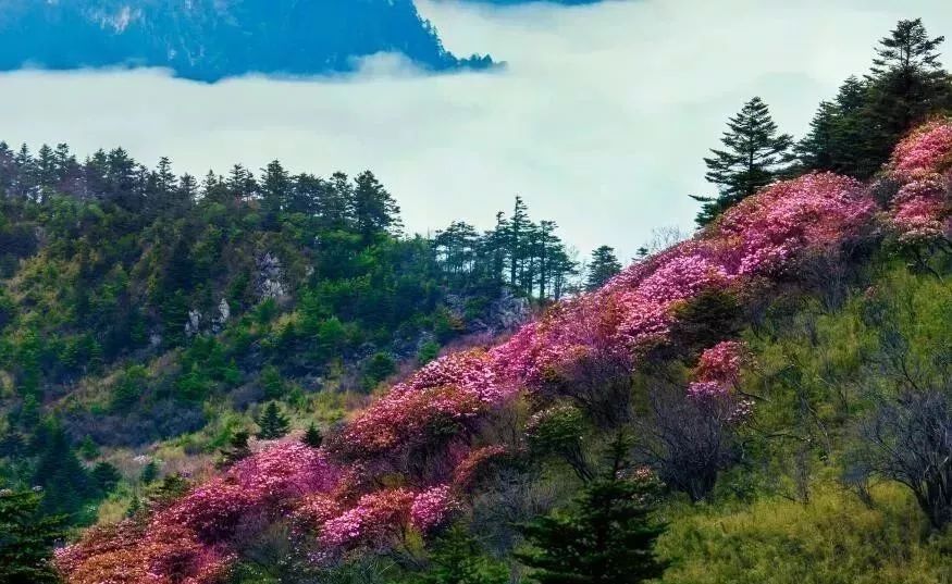 5月份的神農頂景區,從神農營到太子埡景點,杜鵑花海將綿延十多公里,游人可在如云似海的杜鵑花海里盡情徜徉,一朵一株一大片,一片一山一滿眼,但見千簇萬叢鮮花盛開,萬紫千紅爭奇奪艷,如云霞一般。無論脊嶺山坡,還是溝谷巖坎,她們或以身姿素雅、幽香傳情而稱奇,或以體態婀娜、色彩斑斕而見長,或如火如荼、燦若蒸霞、艷蓋桃李。