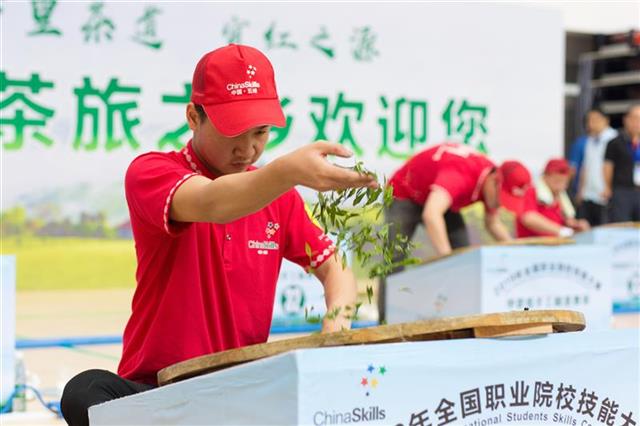 “大賽分手工制茶現場實操和茶葉加工技術缺陷診斷兩個環節,分別占比賽總成績90%和10%?!比珖殬I院校手工制茶大賽辦主任鄧南亞介紹,全國職業院校手工制茶國賽已舉辦3屆。與以往不同,此次是首次走出貴州在湖北五峰舉辦。此外,本屆大賽在競賽內容上創新設置“茶葉加工技術缺陷診斷競技”,在文化傳承上原創編制了源于制茶技法的“茶韻健身茶操”和“相聚茶鄉”主題歌曲,在賽項成果轉化上首次成立“全國職業教育茶業高技能人才培養聯盟”,致力建設高素質的茶產業工人隊伍。