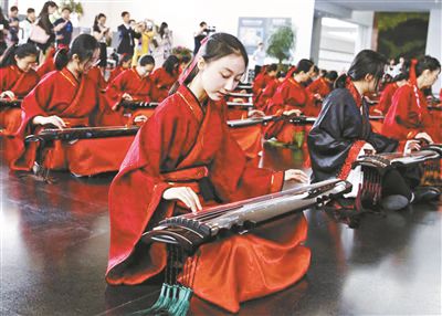 古琴是我國最古老的彈撥樂器之一,作為“華夏正音”,寄寓了中國千年的正統思想和文化,以其豐富的內涵和深遠的影響為世人所珍視。5月25日上午,在中國園博館一層大廳里,70位琴者共同演奏《祝福祖國》,隨后以“快閃”的方式演唱《我和我的祖國》,讓觀眾在琴樂悠揚的園林中沉浸式地感受古琴魅力,領略古琴文化。