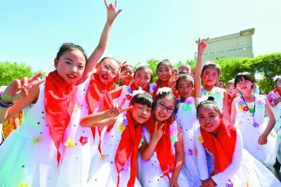 “六一”兒童節前夕,甘肅省張掖市甘州區南關學校的師生在學校操場舉行校園文化藝術節。王將攝/光明圖片